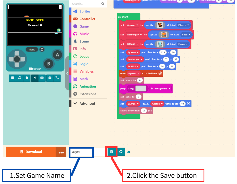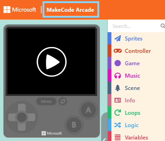 Next, to load a game: First, return to the Game Project List by clicking “MakeCode Arcade” in the top-left corner.