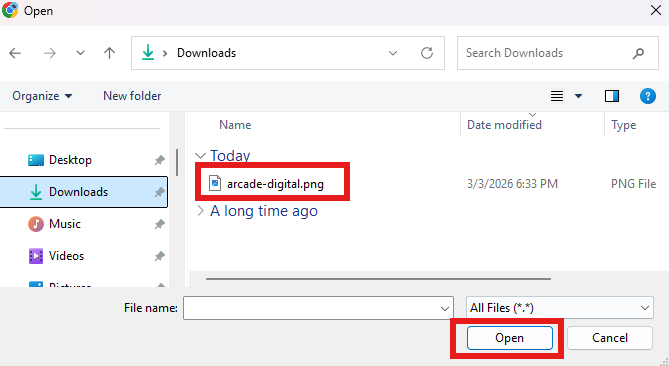 Find the file you saved earlier and click Open.