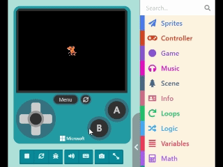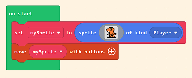 First, click on “Controller” in the Block Toolbox and select the “move [mySprite] with buttons” block.